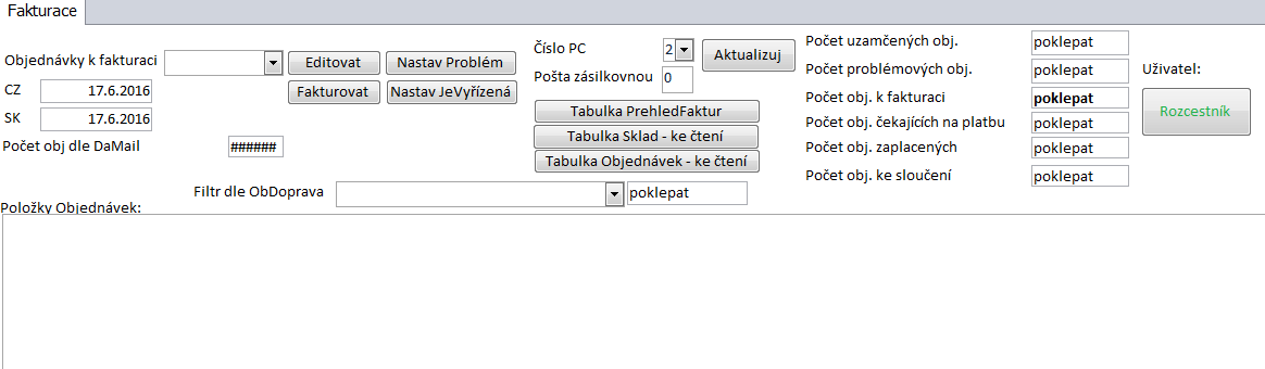 Objednávky pouze k fakturaci, zbytek se řeší na úrovni objednávek (viz níže Práce s objednávkami)